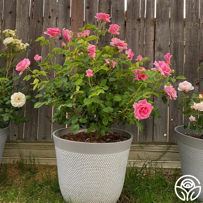 A perfect, pink Hybrid Tea, Bewitched will cast a spell on you with her urn-shaped buds that unfurl into large, 5″, double, perfect, pearl-pink flowers. Bewitched has a strong damask fragrance, shiny, green foliage, and long stems for an ideal cut rose. Her color and scent are at their best in cooler temperatures. Add this vigorous, continually blooming rose to your garden and be entranced by her beauty from the start!