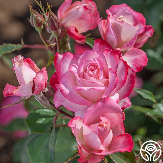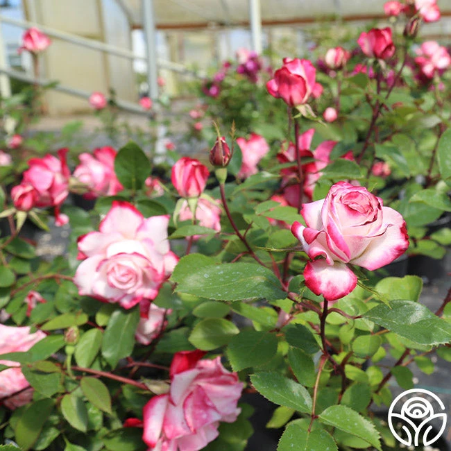 This holiday-themed Floribunda displays lovely, bi-colored blooms of white suffused with deep pink to red edges. Candy Cane Cocktail has superior qualities and has inherited its exceptional rebloom and disease resistance from the line of Knock Out Family of Roses. Add this rose to your cutting garden for delightful blossoms all season long.