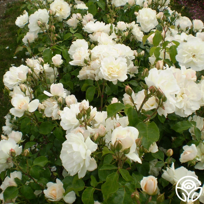 Get ready for an explosion of creamy blooms on this medium Shrub! Champagne Wishes will have clusters and clusters of soft apricot blooms that fade to white, contrasting beautifully with the healthy, dark green foliage. She is a great choice for pairing with various, colored perennials each season in a mixed hedge or low border. Champagne Wishes is easy to care for and will bloom repeatedly throughout the season.