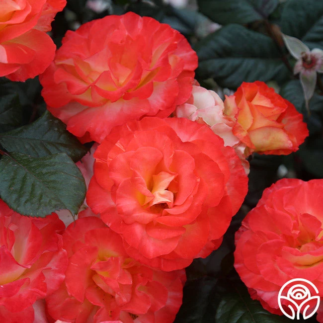 Named for the glass artist, Dale Chihuly, this rose produces the most beautiful 3½ – 4” blooms in ever-changing colors of apricot, yellow, orange, and red. Chihuly’s colors are painted, blushed, blended and at times striped with all of these colors. This continually blooming plant has a mild tea fragrance. Expect new growth to be dark red on this Floribunda.