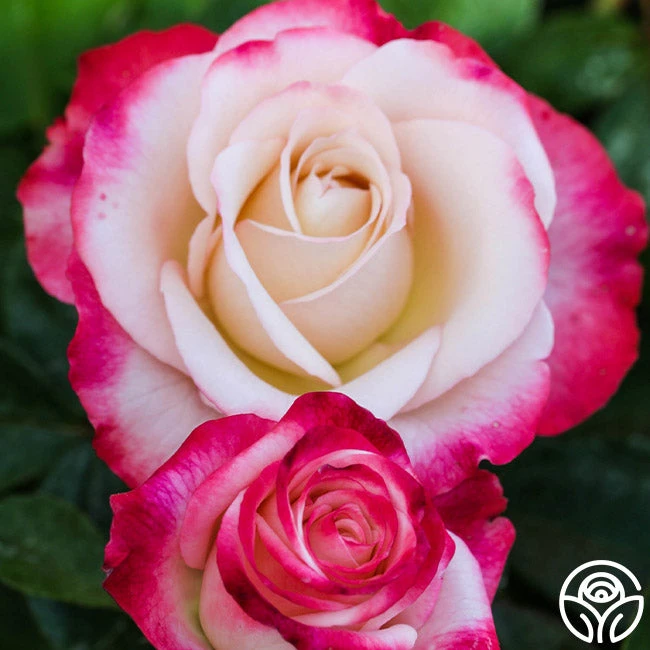 This rose stands out with her beautiful double blooms with an eye-catching color combination and fantastic, strong fragrance. Double Delight produces large, somewhat informal, old-fashioned blooms of 24-30 petals. Her flowers are a rich, creamy white with strawberry-red edges making her an immediate focal point. Her coloring and bloom size are at their best during warm days and cooler evenings. She’s a must have for any garden in zones 7-10 and is an all-around customer favorite.