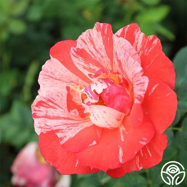 Grimaldi is a regal, Floribunda named for Prince Rainier of Monaco. He is a strong and prolific bloomer with sweet petals of salmon-pink, splashed with cream in a ruffled yet full form. Lightly fragrant, this robust and highly disease-resistant rose, is a magnificent sight when planted in groups or as a hedge.