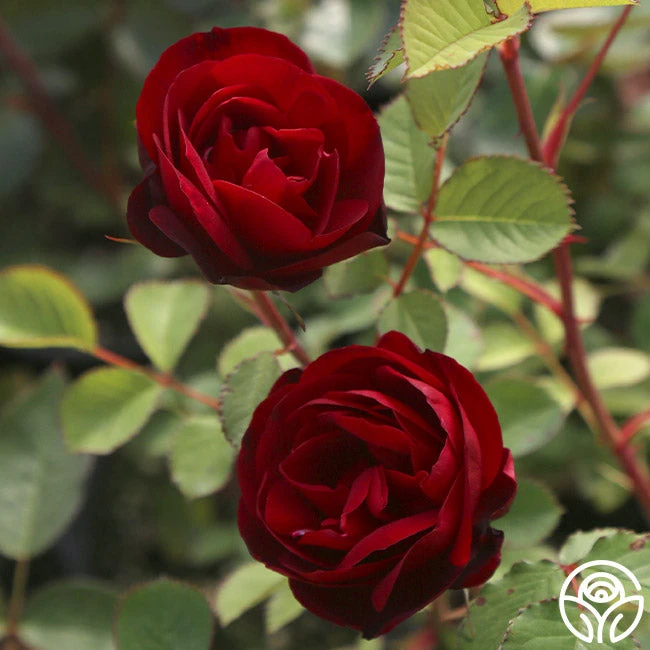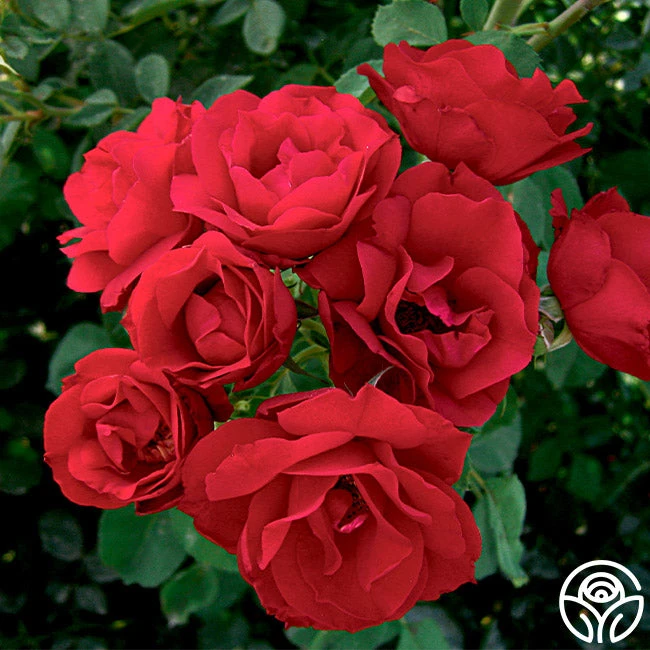 This extremely winter-hardy rose is good for zones 3-9, making it the perfect bright addition to gardens in colder climates. The ovoid and pointed blooms open into the most velvety, deeply saturated red flowers. Big sprays of double 2″ blooms give loads of color that set beautifully against deep green leaves. A vigorous and fitting choice to honor the 100th anniversary of the Canadian Red Cross.
