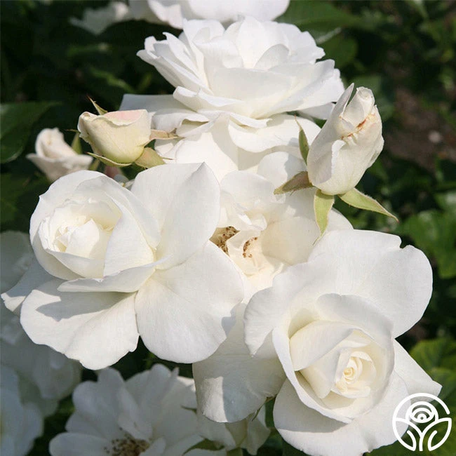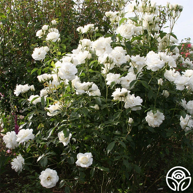 We have listed Iceberg as a Shrub rose because we feel it fits here better than the Floribunda class. Iceberg is one of the finest roses ever developed with large, semi-double, 3” blooms with 10-12 petals. Her pure white flowers are borne in absolute abandon on a strong-growing bush with shiny mid-green foliage.