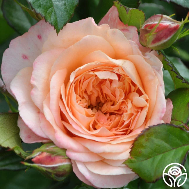 Lawrence of Arabia is a perfect desert sunset painted across the petals of this lightly perfumed 5” rose with 90+ petals per bloom. sHis eye-catching shade of apricot-gold and cherry-coral feature an old-fashioned look with the modern benefits of massive yields of blooms against rich, glossy foliage. Lawrence of Arabia is a compact, continually blooming rose that is very easy to grow.