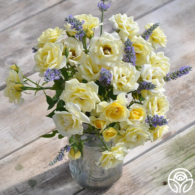 A lovely, very fragrant rose, Lemon Spice is bright yellow and loves the heat of warmer zones. Long pointed buds open into large, high centered, fully 5″, double blooms with a petal count of 25+. The blooms are set against a background of dark, leathery green foliage on a continually blooming plant. Makes an excellent cut rose and can tolerate dappled shade as she seems to make her own sunshine! A cheery addition to any garden!