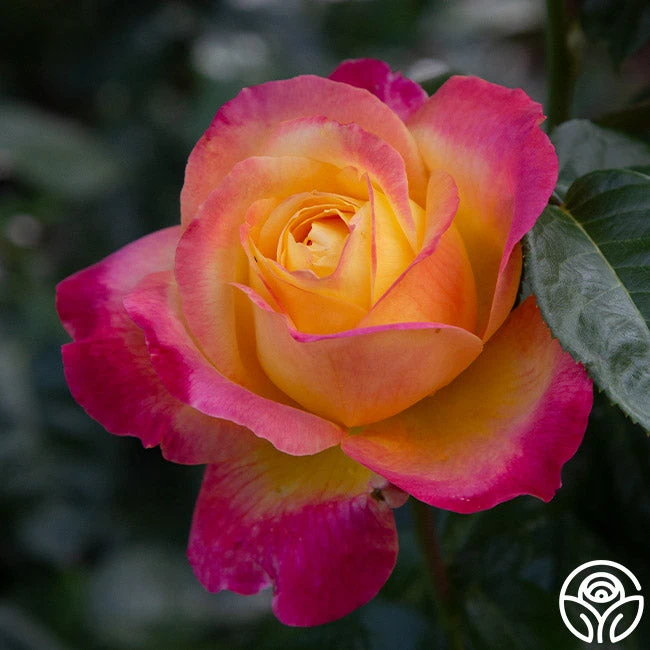This Hybrid Tea features a moderate myrrh fragrance and beautiful yellow and pink colors. The outer edges of the petals show off a blushing pink color while the center glows with yellow. Love & Peace’s blooms average 5.5” in diameter and sit atop long, sturdy stems with a profusion of glossy, green leaves. She is a vigorous grower, perfect for the cutting garden, with large solitairy blooms. While she does great in beds and borders, Love and Peace may also be grown in a container with appropriate winter protection.
