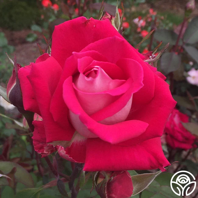 This Grandiflora lives up to her name and is as loyal and ravishing as true Love. Her striking blooms of scarlet red with reversed, silvery white petals produce summer-long blooms on a compact bush, making her ideal for patios and porches. Love is rarely without blooms all season long proudly displayed against her glossy, dark green foliage. Love is an All-American Award winner that makes amazing arrangements with her beautiful, 4” blooms.