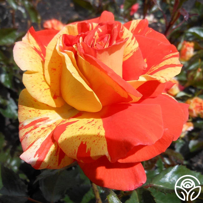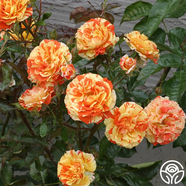 Medium to large, fully double, 4” blooms with 30+ petals are produced in clusters on Oranges ‘n’ Lemons. Her flowers are striped, speckled, and streaked with peachy cream coloring that fades gently as she ages. Her roses have a mild fruity fragrance and a delightfully unique coloring.