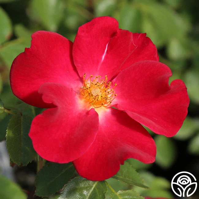 We named this lovely shrub rose to honor a wonderful English gentleman who is the world’s expert on old roses. Peter Beales is a nicely perfumed, single, rich crimson-red bloom with a pronounced golden eye. Flowers cover the rounded, densely foliage bush all season. His rich, dark green foliage provides a perfect contrasting background for the lovely blooms.