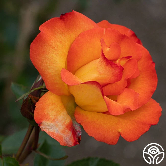 Playboy is an eye-catching Shrub rose with single, 4″ blooms of 7-11 petals in orange-copper, gold and scarlet with delicately ruffled petals. Her flowers almost appear as bright, little candles of orange and pink in the garden. Expect prolific blooms with this rose and minimal care on the gardener’s part as she is very easy-to-grow. Playboy is a compact, continual blooming bush with dark, glossy foliage.