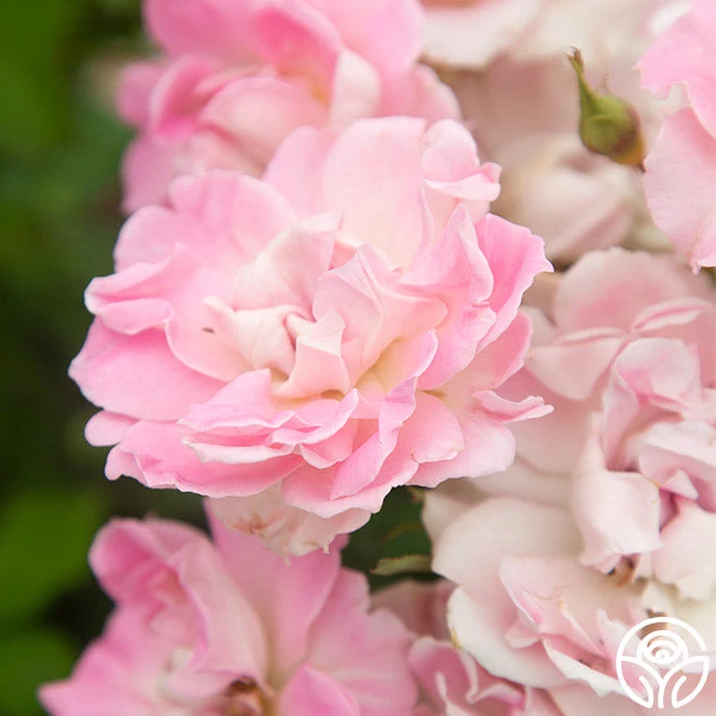 Bright pink with green and white petal undertones, Porcelain Rose is bursting with blooms that are double and borne mostly solitary on nearly thornless canes. The fragrance of this Shrub is lightly aromatic. Porcelain Rose is a prolific continual bloomer, inviting you to enjoy her beauty all season long.