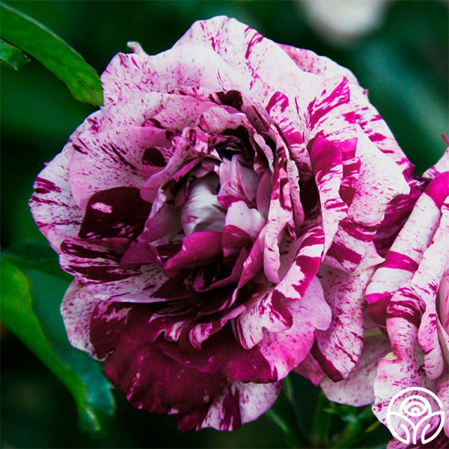 TOP SELLER! Prepare to be stunned by the unique splash of Purple Tiger. Each unique bloom and petal seems to explode in a colorful rhythm of slashes, dashes, streaks, and dots as if splattered on by an artist. A citrus-sweet perfume and minimal thorns are an added bonus! Any lover of purple roses must add this rose to their collection.