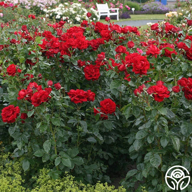 Sunbelt®Desmond Tutu is a wonderful Floribunda rose with large, elegant, deep-red flowers opening from high-centered buds. The blossoms are formed in clusters, making just a few stems into a full bouquet. Desmond Tutu is a Gold medal winner in international competition. This moderately fragrant rose does well in beds, borders, or pots and is a favorite of pollinators.