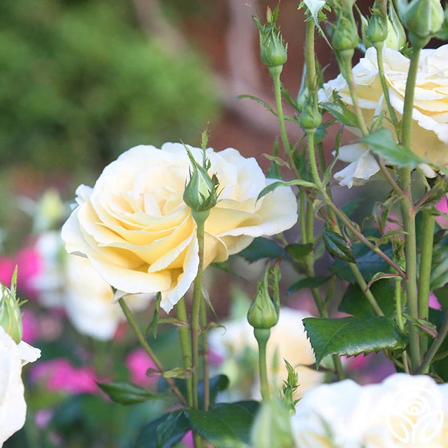 Sunshine Daydream keeps us wishing for summer months with her waves of flowers in a soft, butter yellow maturing to a dreamy cream as she gently unfurls. Each of her flowering stems bears up to eight 3” blooms against glossy, dark green foliage. Sunshine Daydream is extremely disease resistant and thrives in zones 6-9. We love her as a strong hedge, growing up to 6’ in height. She is a “must-have” for cutting gardens as well!!