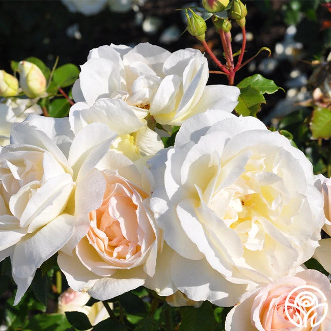 A rose named after the Russian composer, Tchaikovsky, this plant produces large, very full,old-fashioned, 4” rosette blooms in clusters. His creamy white flowers have a buttery yellow center which look beautiful against the dense medium, semi-glossy, dark green foliage. He is a vigorous and bushy plant that blooms continuously and offers excellent disease resistance.
