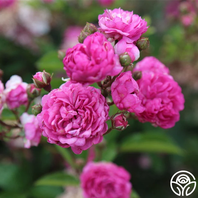 Vineyard Song by Ralph Moore produces large clusters of lavender-violet, double, 2″ blooms with 40+ petals. She is a continual blooming plant that will perfume the surrounding air with a delightful fragrance. Expect this rose to top out around 3-4’ tall.